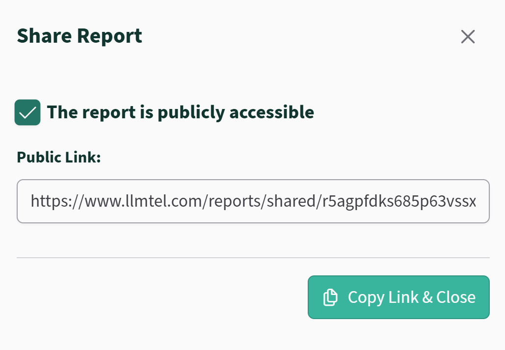 Each report comes with a public share link, so you can easily share your findings with your team, clients, or stakeholders no account required to view.