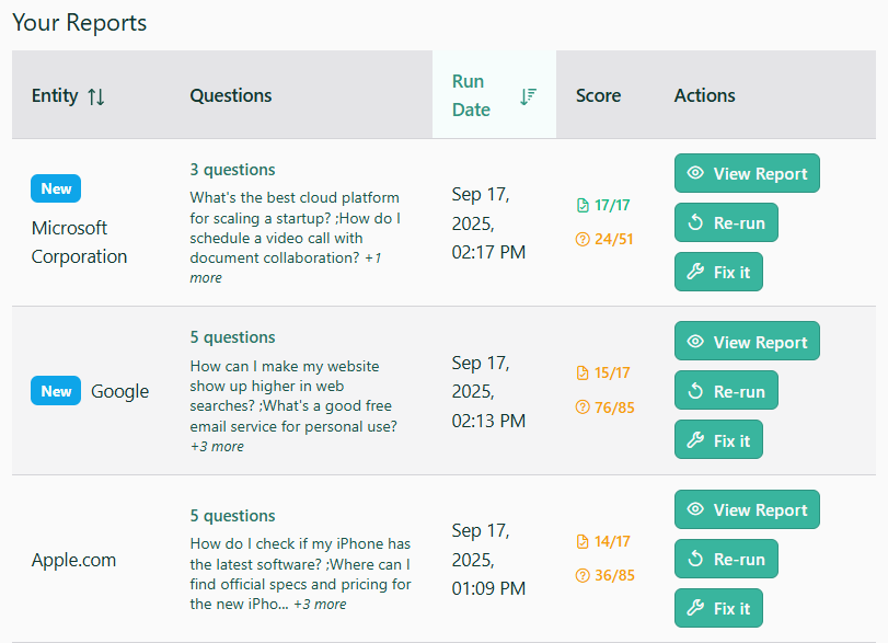 - Actionable Insights: Get guidance on how to improve AI brand visibility.